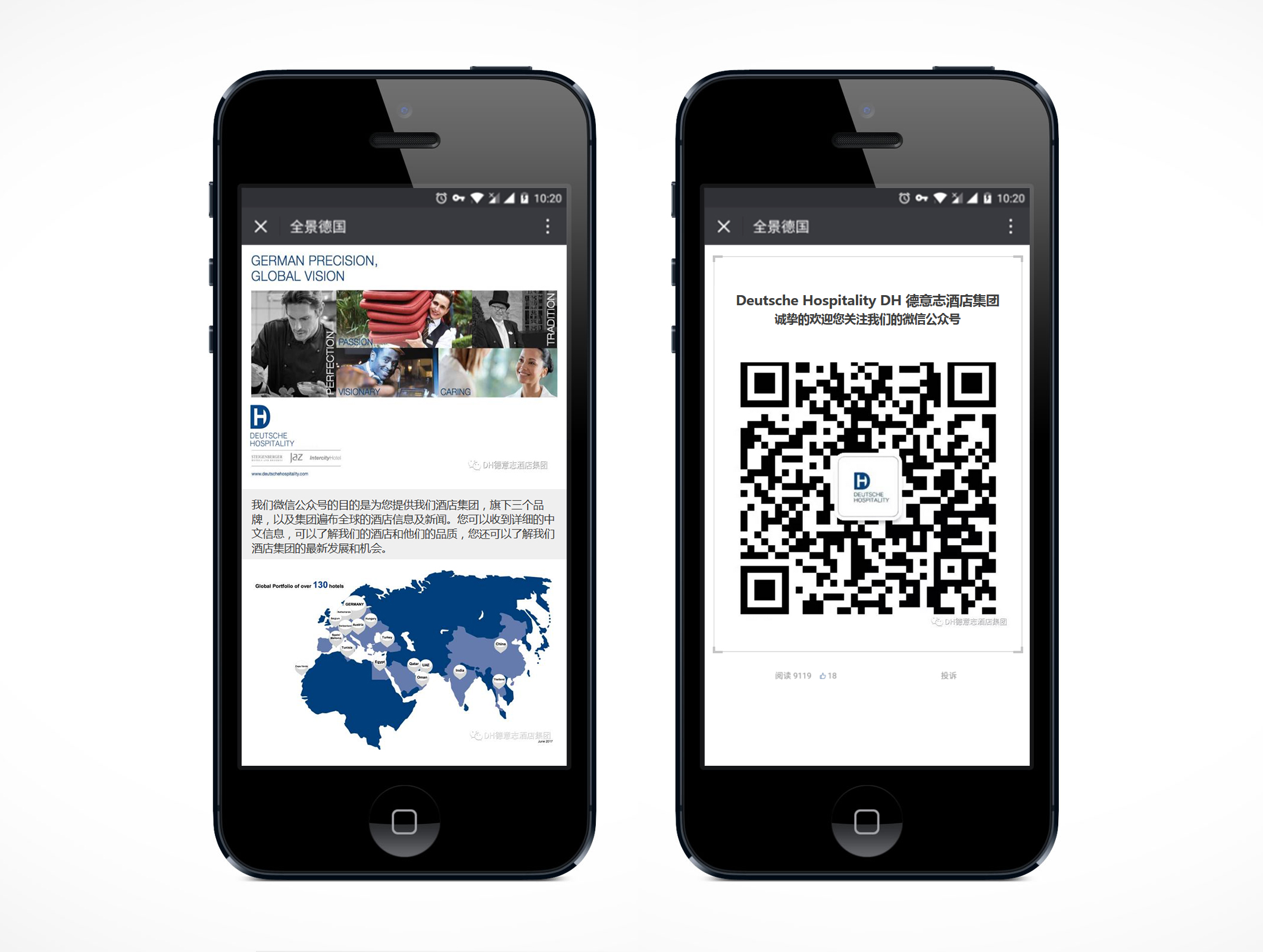 WeChat has also become an integral part of the world of work, where it is increasingly replacing written correspondence and e-mail. Deutsche Hospitality is using a new B2B channel to address its business customers in China and to focus more sharply on the Chinese outbound travel industry. This enables tour operators and travel agencies to receive the latest news about Deutsche Hospitality at first hand. Chinese language information about the group’s hotels and offers is also sent directly to their mobile end devices. The Deutsche Hospitality WeChat channel may be accessed via the following link: http://bit.ly/2vo725u.